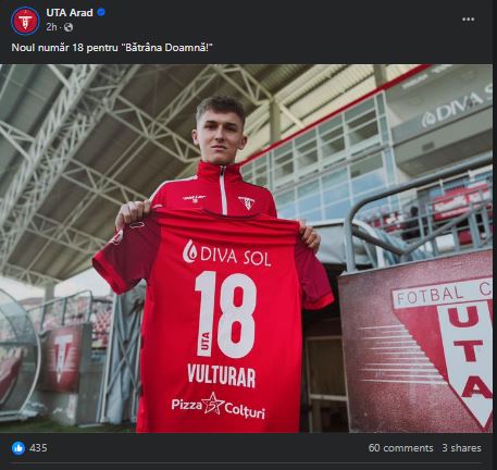 „Noul număr 18 pentru ‘Bătrâna Doamnă!'”, au anunțat miercuri după-amiaza clubul din Arad, pe pagina oficială de Facebook.