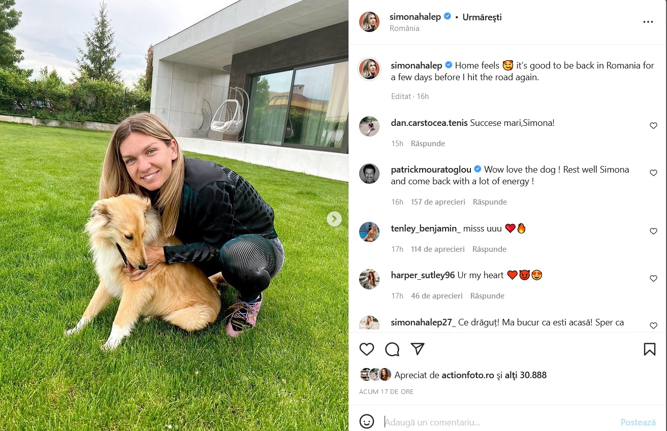 „Wow! Îmi place câinele tău! Odihnește-te bine, Simona, și întoarce-te cu multă energie!”, a spus reputatul antrenor francez.