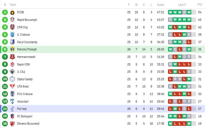Petrolul a obținut doar patru victorii în cele 12 meciuri jucate pe teren propriu, în acest sezon. În duelurile directe, Poli Iași stă mult mai bine.