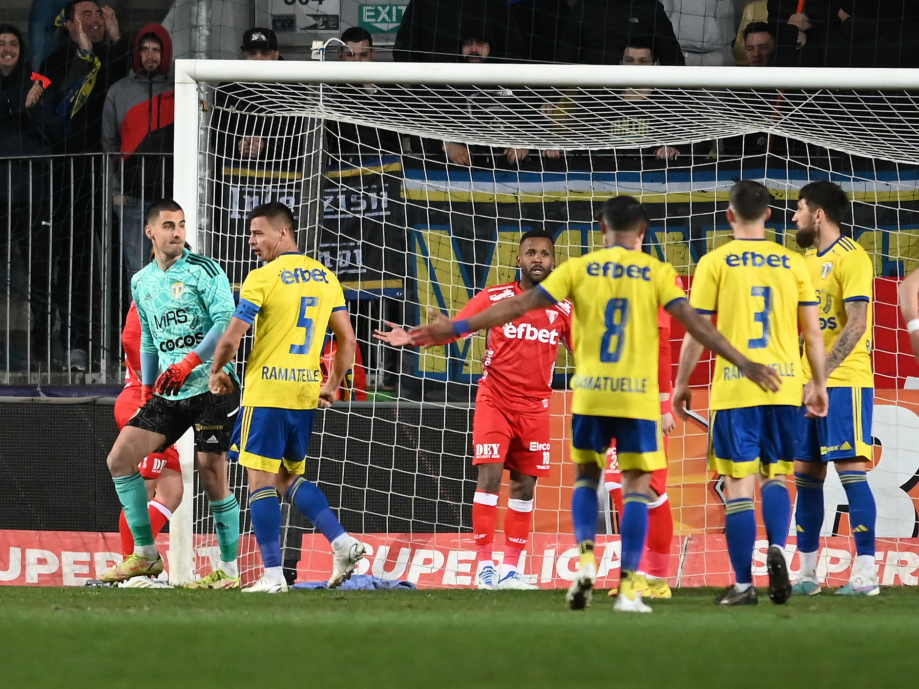 min 90+5 Ocazie mare Petrolul: Iacob reuşeşte să respingă incredibil mingea trimisă spre poartă cu o lovitură de cap în urma unui corner al galben-albaştrilor
