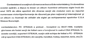 ”FC Steaua (n.n.: actuala ”Fotbal Club FCSB S.A”) a preluat, începând cu 08.07.1998, tradițiile glorioase ale fostei secții de fotbal care a funcționat în cadrul CSA Steaua. În aceste condiții, suporterii Steaua, susțin atât echipa de fotbal a FC Steaua, cât și suporterii CSA Steaua (din secțiile, handbal, hokey, baschet, tenis etc.). În aceste condiții, pentru consumator neexistând risc de confuzie.”