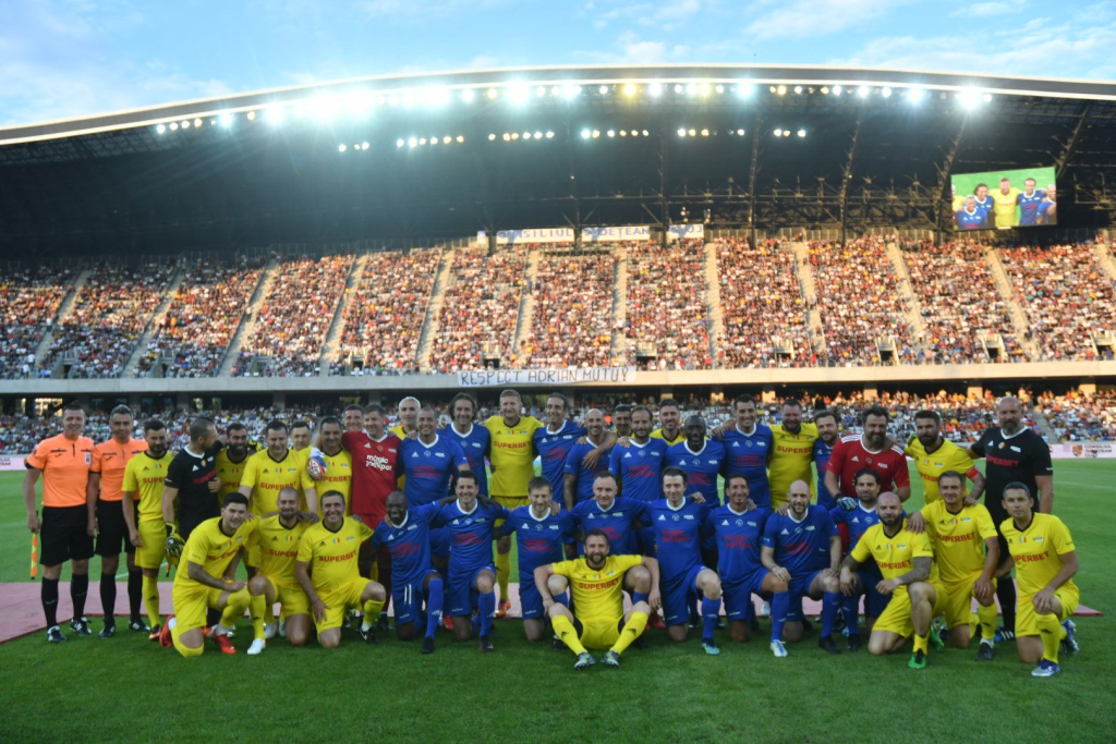 Meciul de retragere al lui Adrian Mutu a avut loc duminică, în cadrul Sports Festival. Pe Cluj Arena s-au înfruntat Team România și World Stars, sub comanda lui Gică Hagi, respectiv Cesare Prandelli.