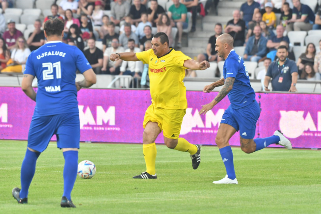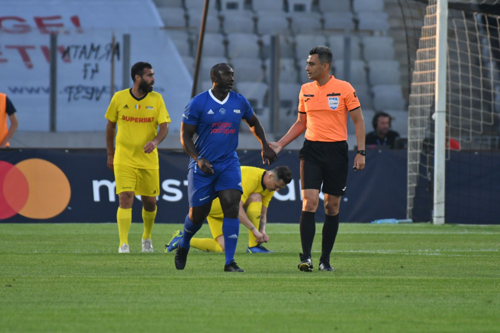 Minutul 10: Jimmy Floyd Hasselbaink a deschis scorul pentru World Stars, dar Adrian Mutu a egalat la faza imediat următoare. Gheorghe Hagi i-a pasat perfect lui Mutu, care a scăpat singur cu Frey și a deviat decisiv în plasă, cu exteriorul.