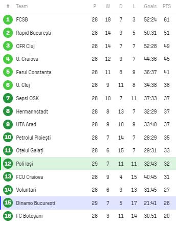Ambele echipe își propun salvarea de la retrogradare, în acest sezon. Cu o victorie, Dinamo se aproprie la doar trei puncte de rivala din această seară. În schimb, Poli Iași poate ajunge la nouă puncte distanță de locurile de baraj, cu o victorie în această seară.