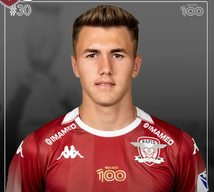 El are o poveste mai diferită. El e din Vărăști, satul, de pe aici de pe lângă București. Magazionerul mi-a zis că are un copil foarte bun. A venit, Vasile Maftei l-a ținut în probe și a confirmat. A crescut mult în acești doi ani. Are un simt al porții ridicat. Are viteză bună pentru fizicul său. Poate juca și în bandă. ” a spus team-managerul Rapidului, la emisiunea PlaySport live.