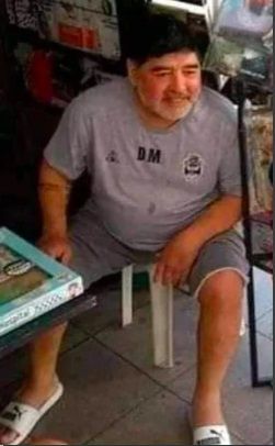 Ultimele veșți despre Maradona se referă de fapt la niște imagini care circulă în mediul online și care au împărțit lumea în două. Această fotografie se pare că ar fi cea a unui vânzător de ziare din Santiago de Chile. Acesta seamănă incredibil de mult cu Diego! Prilej pentru cei care l-au iubit enorm pe D1OS și cărora încă nu le vine să creadă că a dispărut să speculeze. Și anume că Diego ar fi încă viu. Cu atât mai mult cu cât ”vânzătorul de ziare” poartă un tricou cu inițialele DM (Diego Maradona). Nu este încă foarte clar dacă este doar o simplă coincidență sau o farsă a cuiva. Cert e că există suficienți oameni care să creadă în teoria conspirației. Oricât de neverosimilă ar părea.