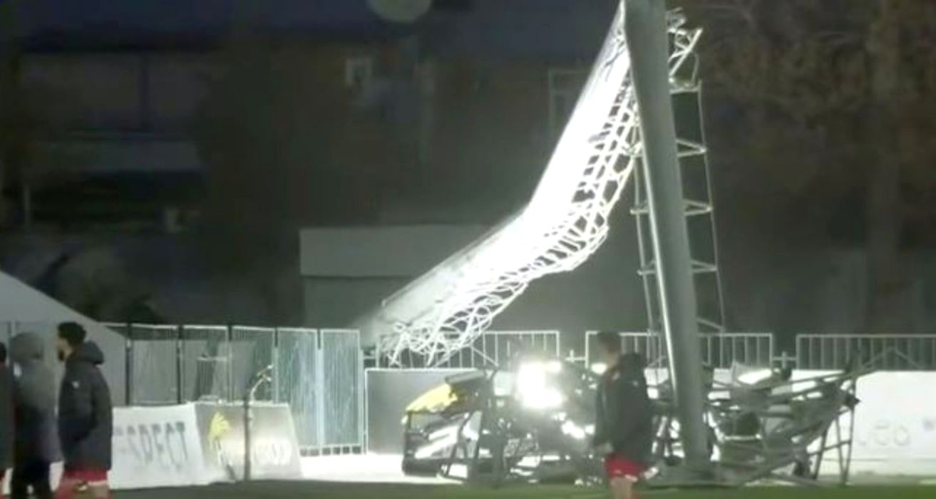 A căzut nocturna în timpul meciului din prima ligă! La PROPRIU! Putea fi o tragedie imensă! Stâlpul s-a prăbușit în timp ce fotbaliștii jucau pe gazon