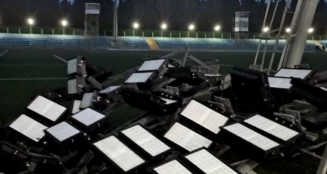 A căzut nocturna în timpul meciului din prima ligă! La PROPRIU! Putea fi o tragedie imensă! Stâlpul s-a prăbușit în timp ce fotbaliștii jucau pe gazon