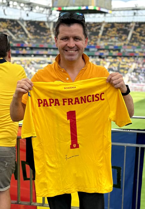 A mers cu tricoul semnat de Papa Francisc la meciul României cu Slovacia. Detaliul din tribună despre care nu s-a știut nimic