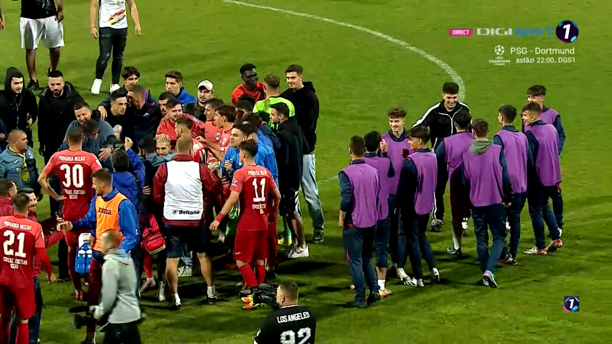 Buzăul e înapoi în Liga 1 după 15 ani! Artificii ca de Revelion sub ochii premierului Ciolacu. Cum au sărbătorit jucătorii și antrenorul Prepeliță