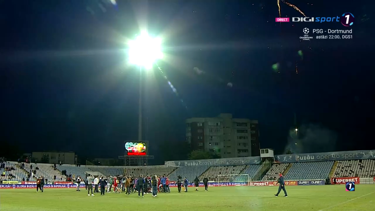 Buzăul e înapoi în Liga 1 după 15 ani! Artificii ca de Revelion sub ochii premierului Ciolacu. Cum au sărbătorit jucătorii și antrenorul Prepeliță