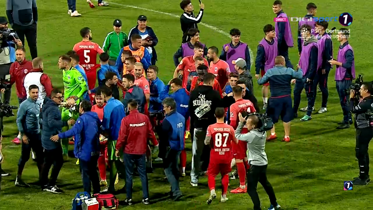 Buzăul e înapoi în Liga 1 după 15 ani! Artificii ca de Revelion sub ochii premierului Ciolacu. Cum au sărbătorit jucătorii și antrenorul Prepeliță