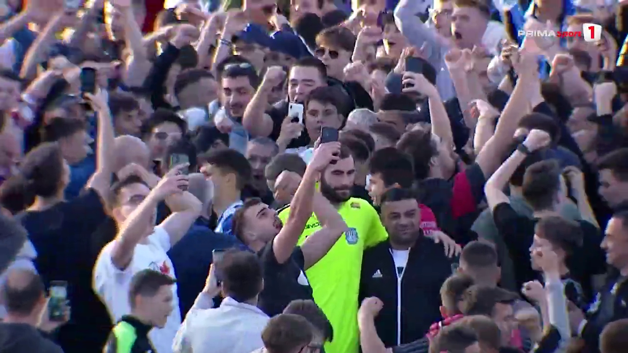 Asta-i hora din Moldova! Poli Iași, petrecere alături de sute de suporteri pe gazon după promovare. Scene fantastice în Copou