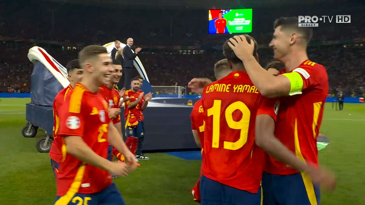 Astea sunt imaginile care vor rămâne în istorie: Spania ia tot! Trofeul Euro, cel mai bun jucător al turneului și cel mai bun tânăr de la Euro 2024. Cum s-au bucurat campionii europeni pe gazon