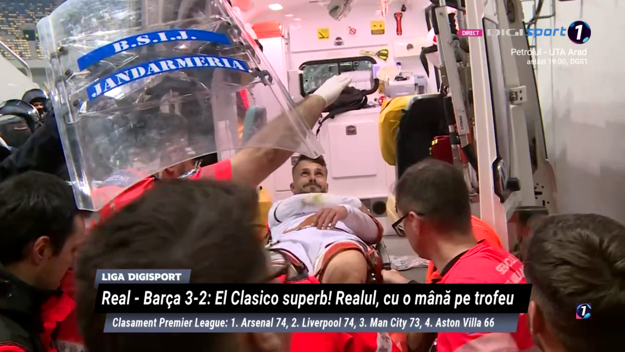 Au aruncat cu pahare și obiecte în rapidistul transportat la spital? Acuzații scandaloase făcute în direct la adresa fanilor FCSB. Cum se apără suporterii