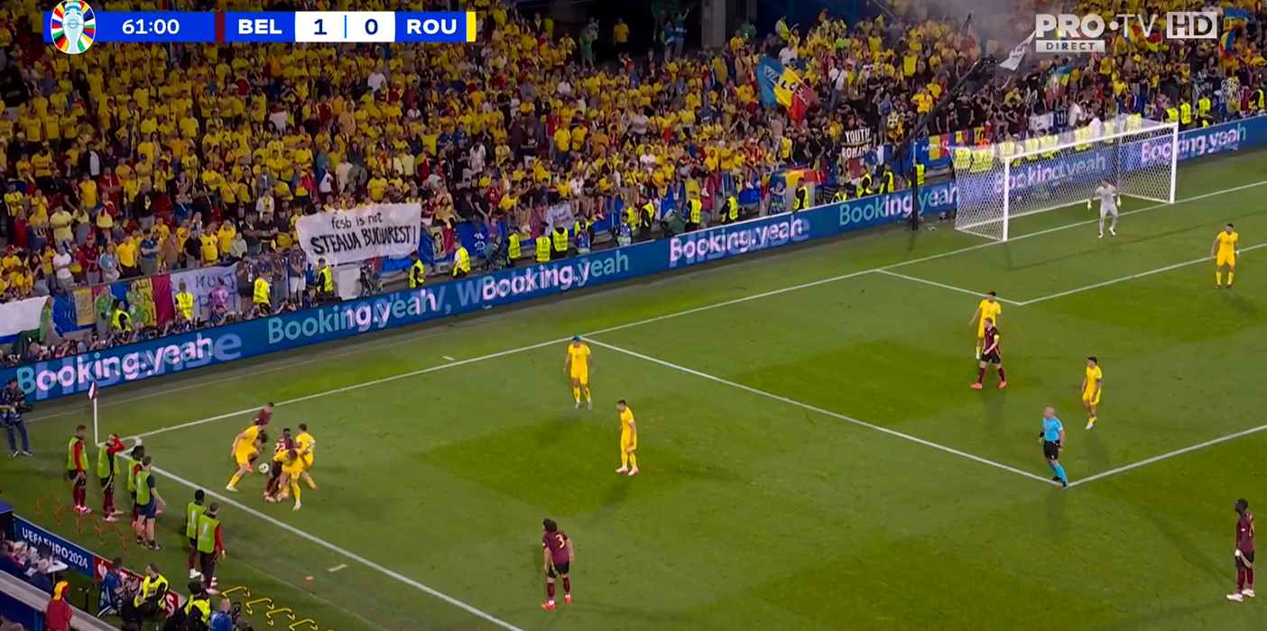 În repriza secundă, ultrașii prezenți în peluza României și-au făcut simțită prezența și din punct de vedere vizual pe transmisiunea meciului. În apropierea unuia dintre colțurile terenului a fost afișat un banner în continuarea războiului […]