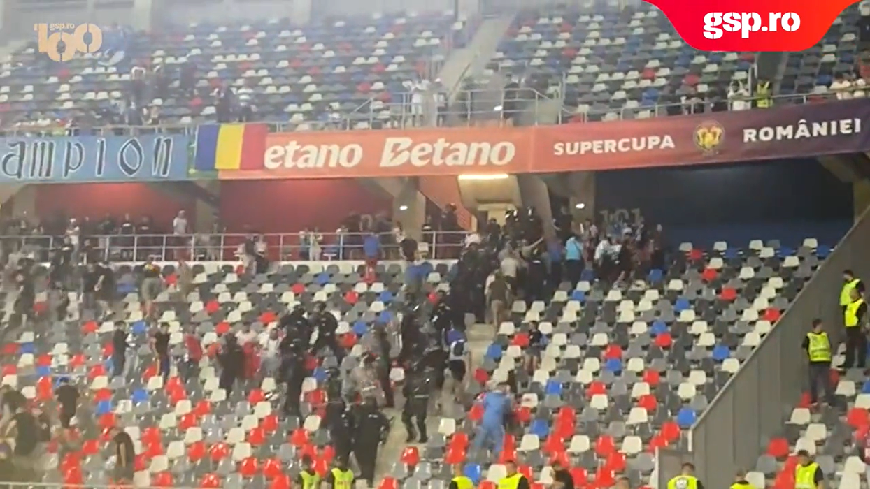 Bătaie între ultrașii CSA Steaua și jandarmi după victoria FCSB în Supercupă. De la ce a plecat scandalul