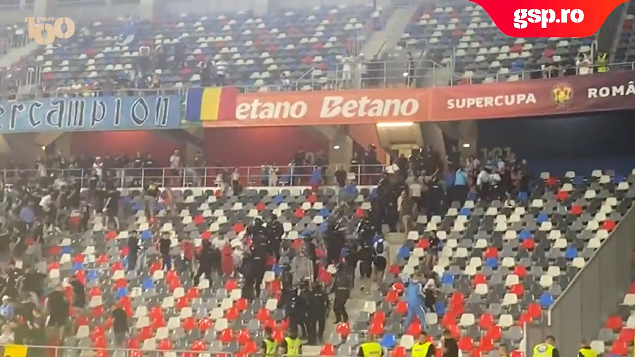 Bătaie între ultrașii CSA Steaua și jandarmi după victoria FCSB în Supercupă. De la ce a plecat scandalul