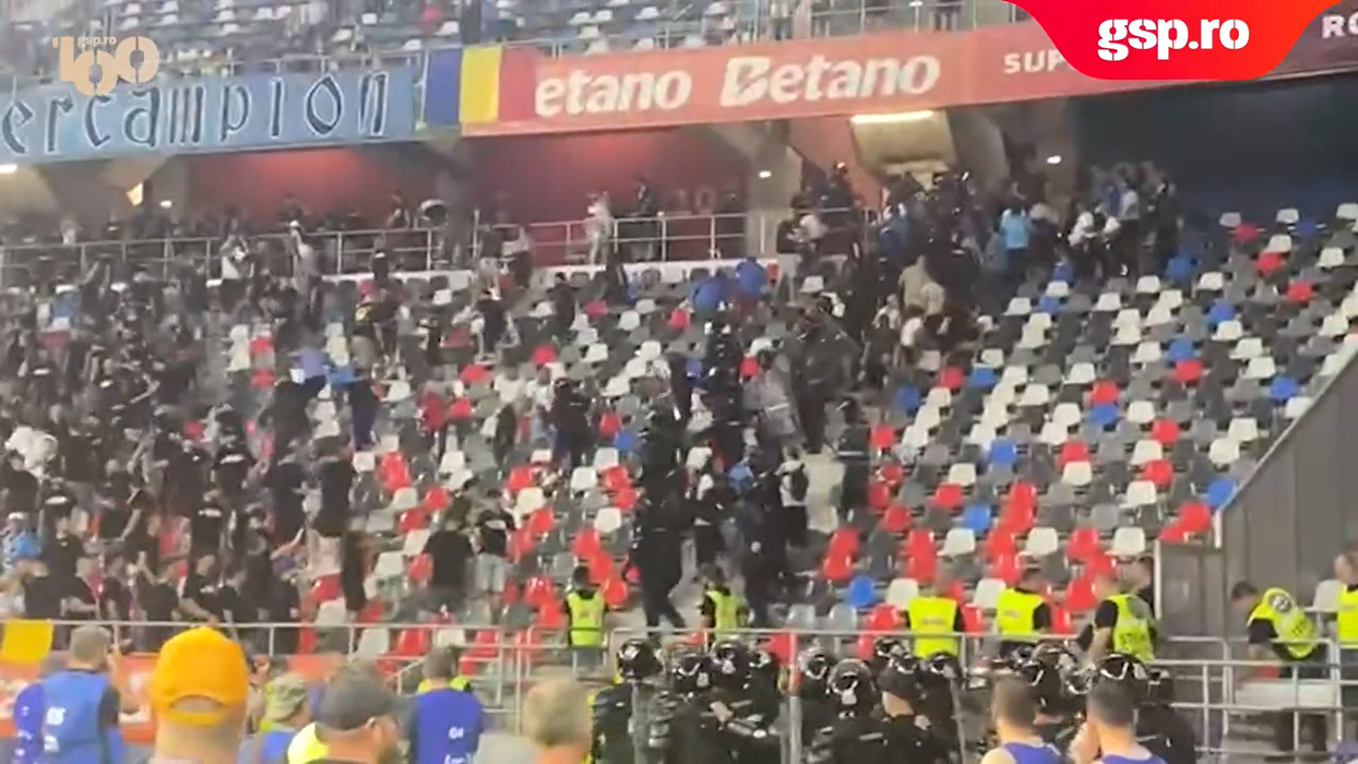 Bătaie între ultrașii CSA Steaua și jandarmi după victoria FCSB în Supercupă. De la ce a plecat scandalul