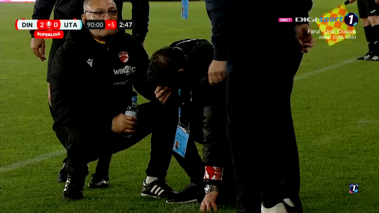 Lui Kopic i s-a făcut rău pe marginea terenului! Scene greu de privit în prelungirile meciului Dinamo – UTA. Ce s-a întâmplat