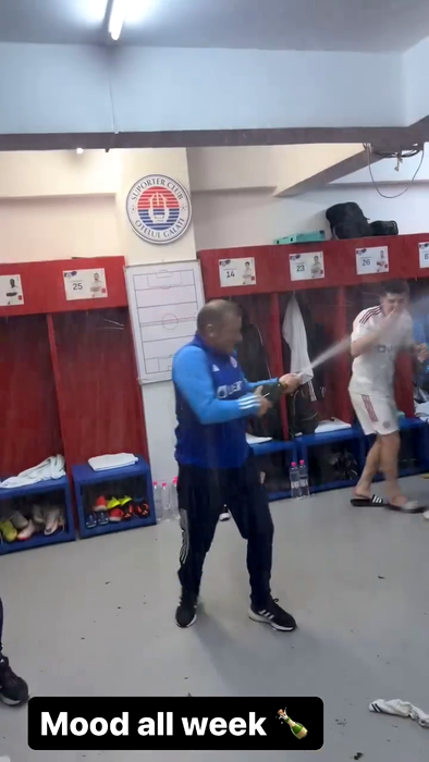 Ca după o victorie în Formula 1! Dorinel, imagini fabuloase din vestiarul Oțelului după calificare! A luat șampania și a udat pe toată lumea