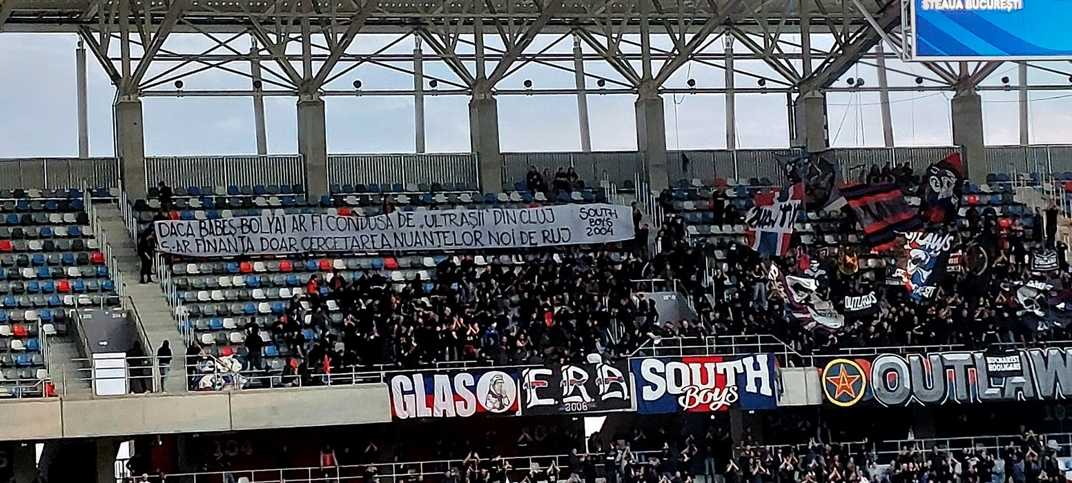 CRONICA ULTRAS. Peluza Sud Steaua vs Șepcile Roșii & PCH. Tribune mai mult goale, mesaje ironice, fum și multă culoare | FOTO ȘI VIDEO