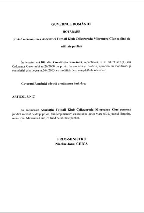 Csikszereda cere Guvernului să fie declarat de utilitate publică! Scopul? Pentru a avea acces la finanțări suplimentare și facilități fiscale. Clubul din Miercurea Ciuc nu are site în limba română!