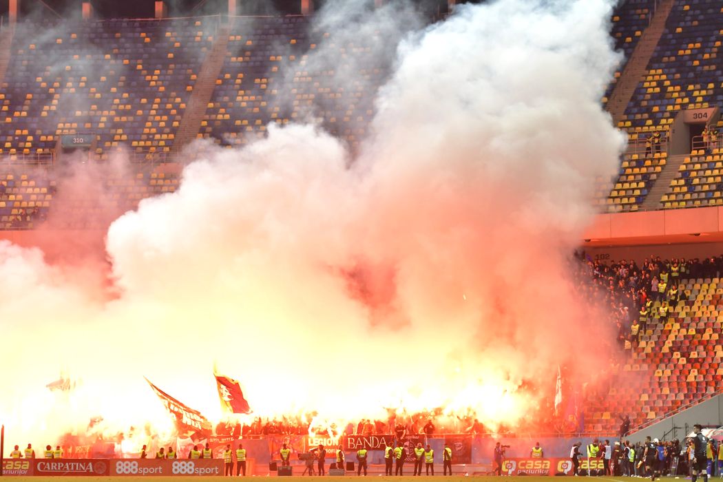 Dinamo – Steaua, oprit mai bine de 5 minute după ce sute de torțe s-au aprins în peluza Stelei. Imagini fantastice de pe stadion