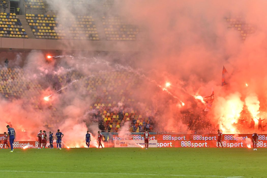 Dinamo – Steaua, oprit mai bine de 5 minute după ce sute de torțe s-au aprins în peluza Stelei. Imagini fantastice de pe stadion