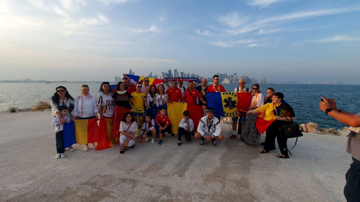 EXCLUSIV. La mulți ani, România! De Ziua Națională, românii din Doha au sărbătorit cu hore și cozonac. La petrecere au participat și fani din țară, veniți să asiste la Cupa Mondială