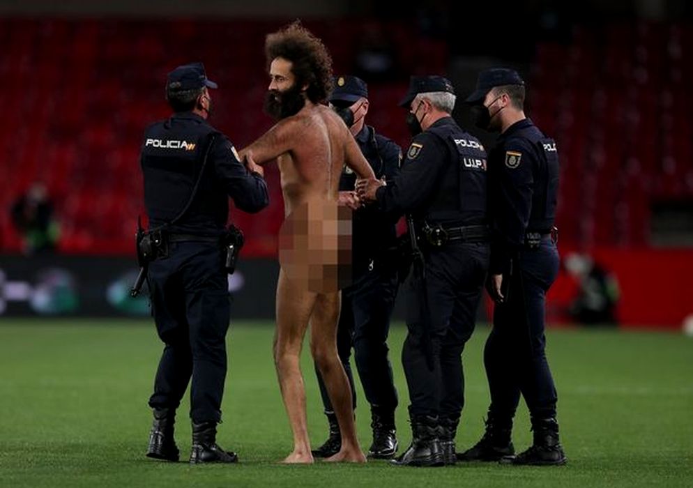 FOTO: Imagini incredibile! Un bărbat dezbrăcat a pătruns pe teren, deși meciul se juca fără spectatori