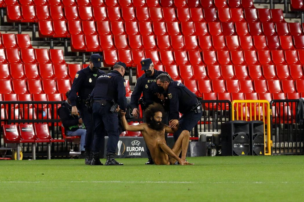 FOTO: Imagini incredibile! Un bărbat dezbrăcat a pătruns pe teren, deși meciul se juca fără spectatori