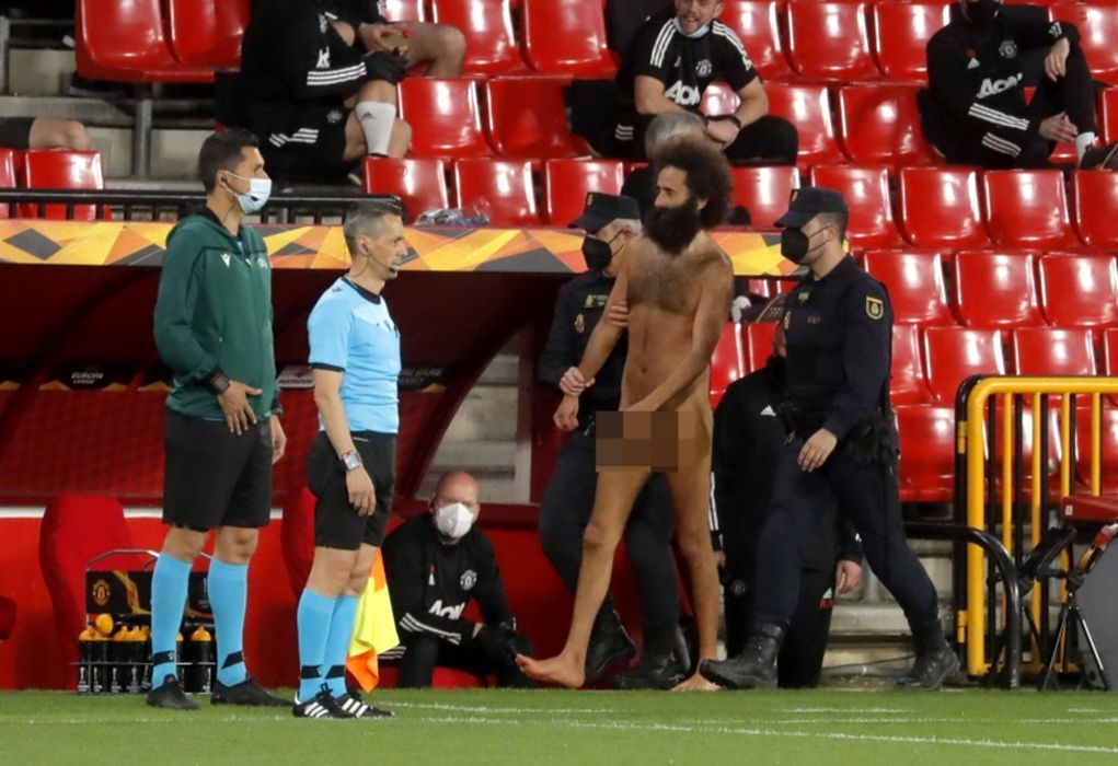 FOTO: Imagini incredibile! Un bărbat dezbrăcat a pătruns pe teren, deși meciul se juca fără spectatori