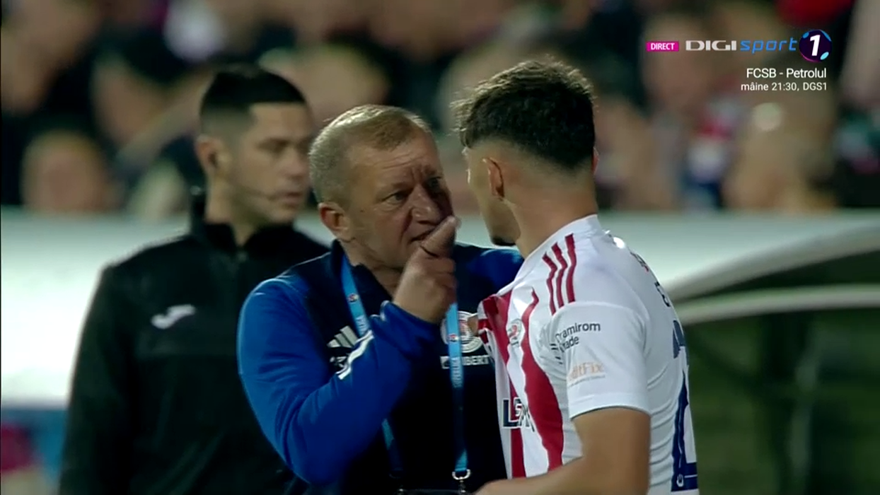 Furios RĂU! Dorinel, criză pe margine la meciul cu Dinamo: și-a luat jucătorul de gulerul tricoului