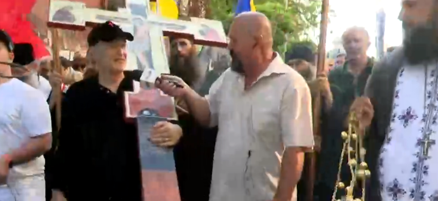 Gigi Becali, imagini spectaculoase. A organizat un marș religios pe Calea Victoriei. A cărat crucea și a cântat cu preoții