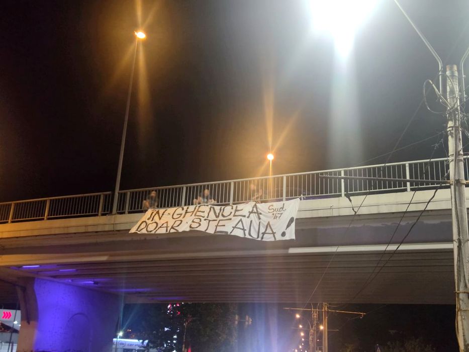 „Gigi, pe veci blestemat pentru furtul repetat!”. „În Ghencea doar Steaua”. Ultrașii de la Peluza Sud au umplut Bucureștiul de mesaje anti Becali și Ciolacu. Foto