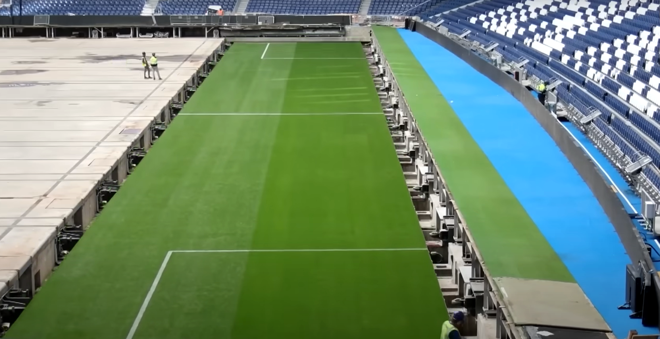 Imagine colosală! Cum arată gazonul de pe Bernabeu cu 48 de ore înaintea de El Clasico: iarma se schimbă cu LIFTUL, după ce este depozitată la 30 de metri adâncime