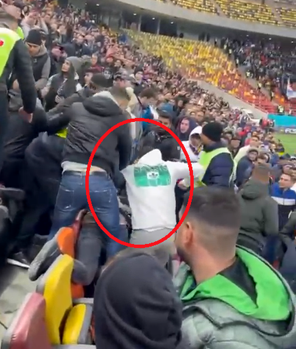 Imagini scandaloase la FCSB – Craiova! Lucian Becali, nepotul lui Gigi Becali, s-a luat la bătaie cu mai mulți spectatori de la „oficială”