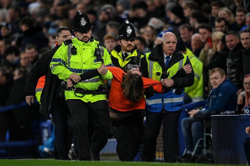 Imagini șocante în Premier League! Un protestatar și-a legat gâtul de bară