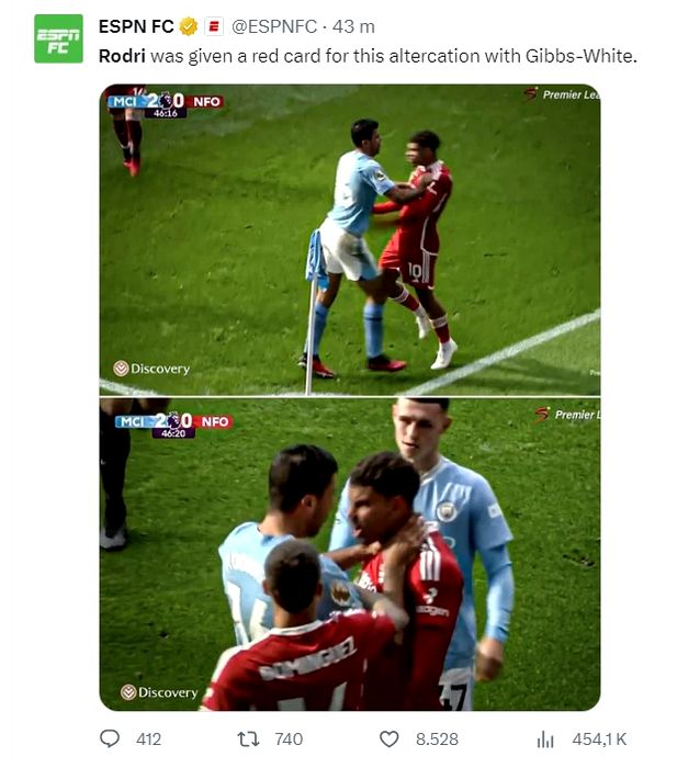 L-a luat de gât și n-a mai ținut cont de nimic. Fază incredibilă în Premier League. De ce a fost eliminat Rodri