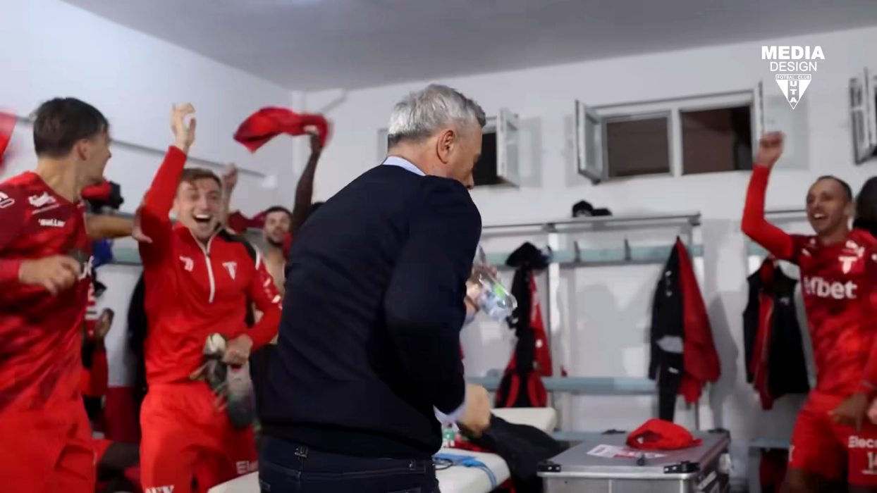 “Mircea’s on fire”. Nebunie dezlănțuită în vestiarul de la UTA după victoria dramatică în fața lui Dinamo. Rednic, dans ca niciodată alături de jucători. Video