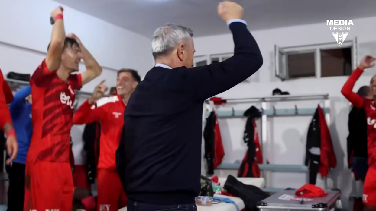 “Mircea’s on fire”. Nebunie dezlănțuită în vestiarul de la UTA după victoria dramatică în fața lui Dinamo. Rednic, dans ca niciodată alături de jucători. Video