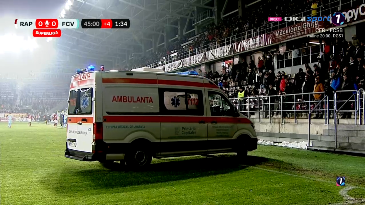 În finalul reprizei, unul dintre echipajele de pe ambulanță a fost solicitat în peluza Rapidului. După câteva momente de confuzie, doi membri ai staff-ului medical de la Rapid au alergat în Peluza Nord pentru a-i […]