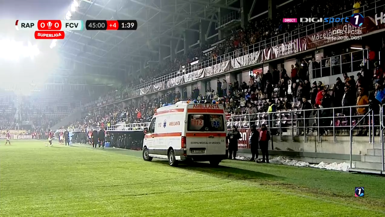În finalul reprizei, unul dintre echipajele de pe ambulanță a fost solicitat în peluza Rapidului. După câteva momente de confuzie, doi membri ai staff-ului medical de la Rapid au alergat în Peluza Nord pentru a-i […]