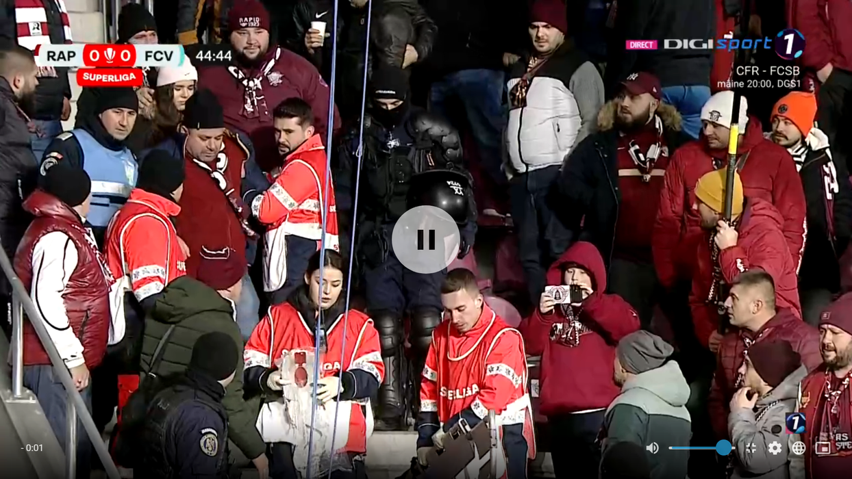 În finalul reprizei, unul dintre echipajele de pe ambulanță a fost solicitat în peluza Rapidului. După câteva momente de confuzie, doi membri ai staff-ului medical de la Rapid au alergat în Peluza Nord pentru a-i […]