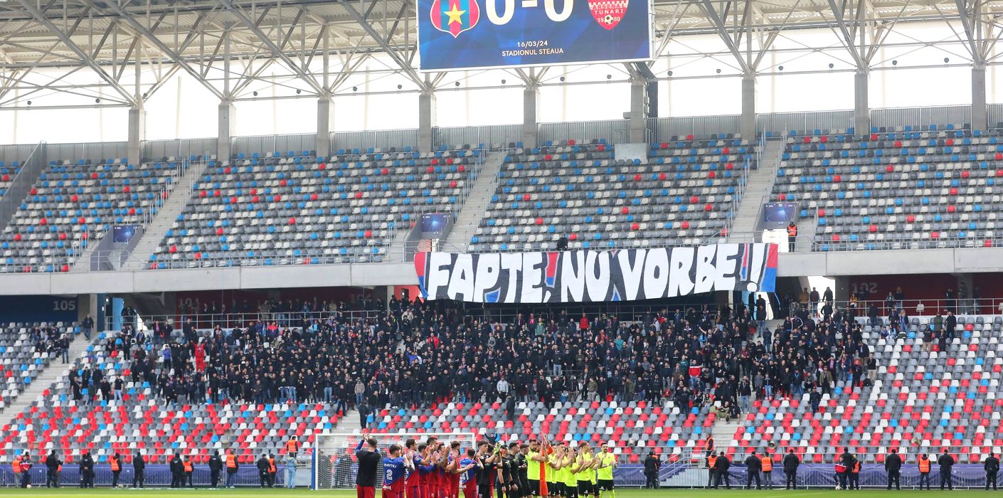 Protest masiv în Ghencea la meciul Stelei! Partida cu Tunari a fost întârziat 10 minute, ultrașii au cerut măsuri urgente de la șefi