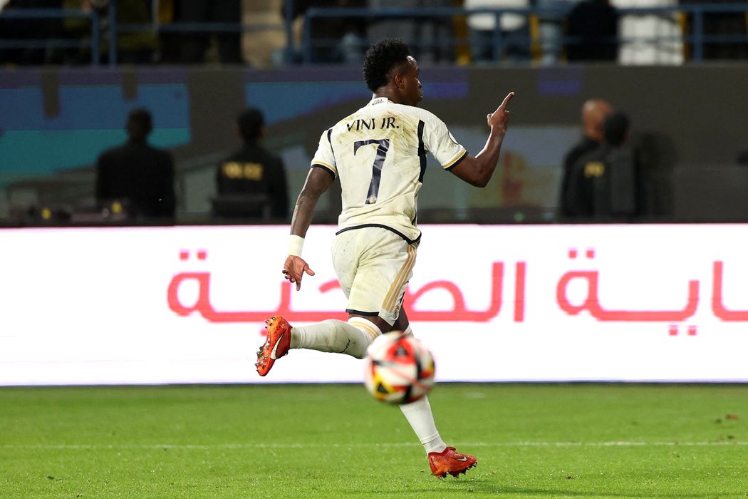 Real Madrid a câștigat Supercupa Spaniei, după ce a dat de pământ cu FC Barcelona. Vinicius a fost omul finalei de la Riad: a marcat trei goluri, a scos un penalty și a provocat eliminarea lui Araujo. FOTO