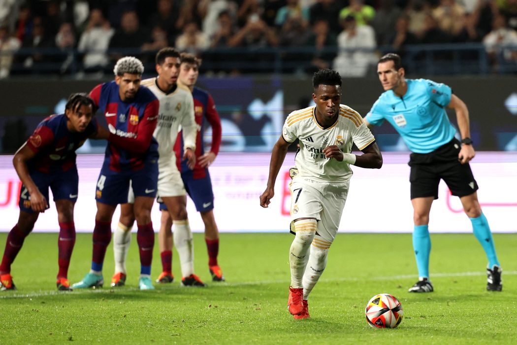 Real Madrid a câștigat Supercupa Spaniei, după ce a dat de pământ cu FC Barcelona. Vinicius a fost omul finalei de la Riad: a marcat trei goluri, a scos un penalty și a provocat eliminarea lui Araujo. FOTO