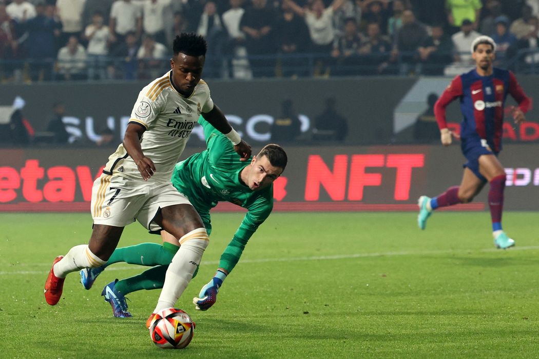 Real Madrid a câștigat Supercupa Spaniei, după ce a dat de pământ cu FC Barcelona. Vinicius a fost omul finalei de la Riad: a marcat trei goluri, a scos un penalty și a provocat eliminarea lui Araujo. FOTO