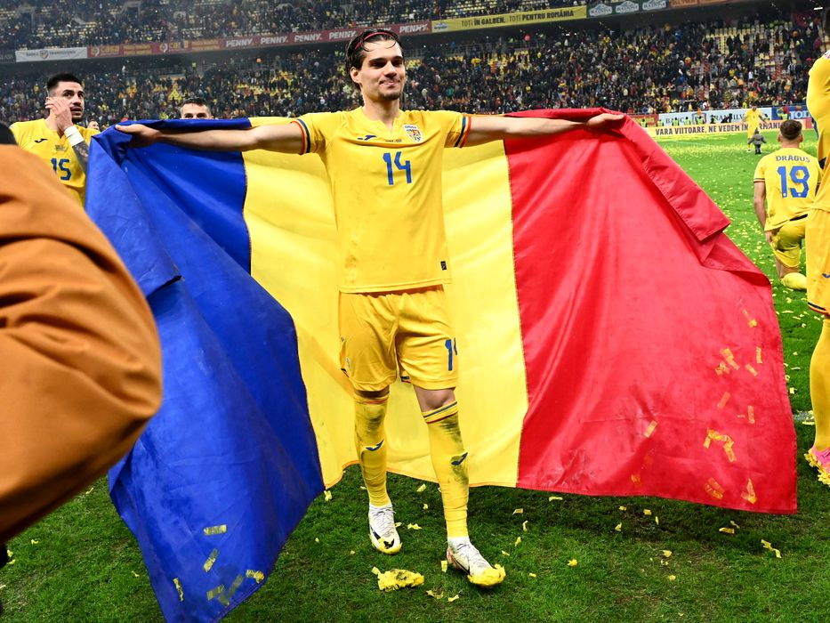 Regele Ianis Hagi. Jucătorul român, imagine superbă, înfășurat în tricolor, după ce naționala a ajuns la EURO 2024 de pe primul loc. Foto